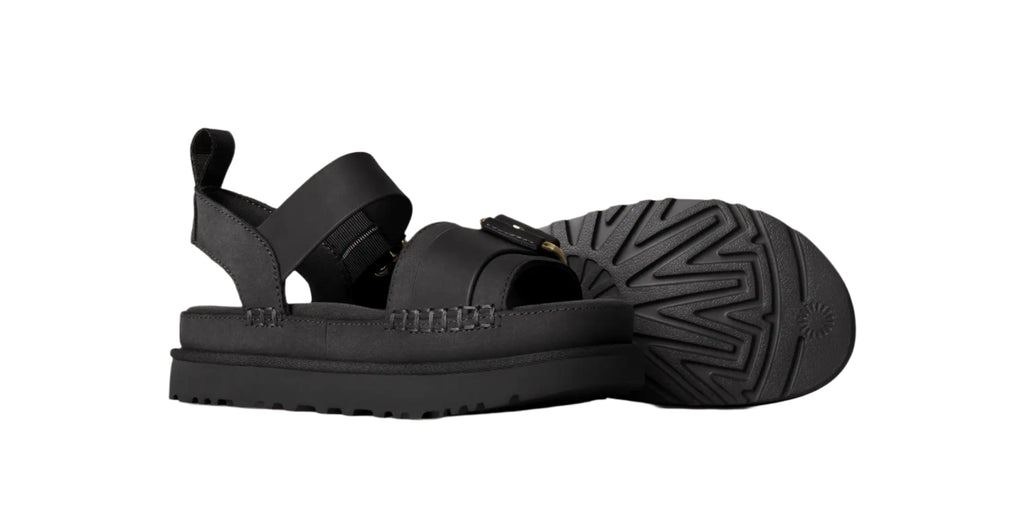 From far-off destinations to local explorations, our Goldenstar Villa sandal delivers lightweight comfort with its renewable sugarcane EVA sole and contoured footbed. The straps are crafted with a combination of soft Nubuck and genuine leather, complete with an adjustable ankle buckle for a custom fit. With quintessential elements like our Overstitched Binding and box stitch details, the Goldenstar Villa brings your favorite Feel of UGG into the warmer months.