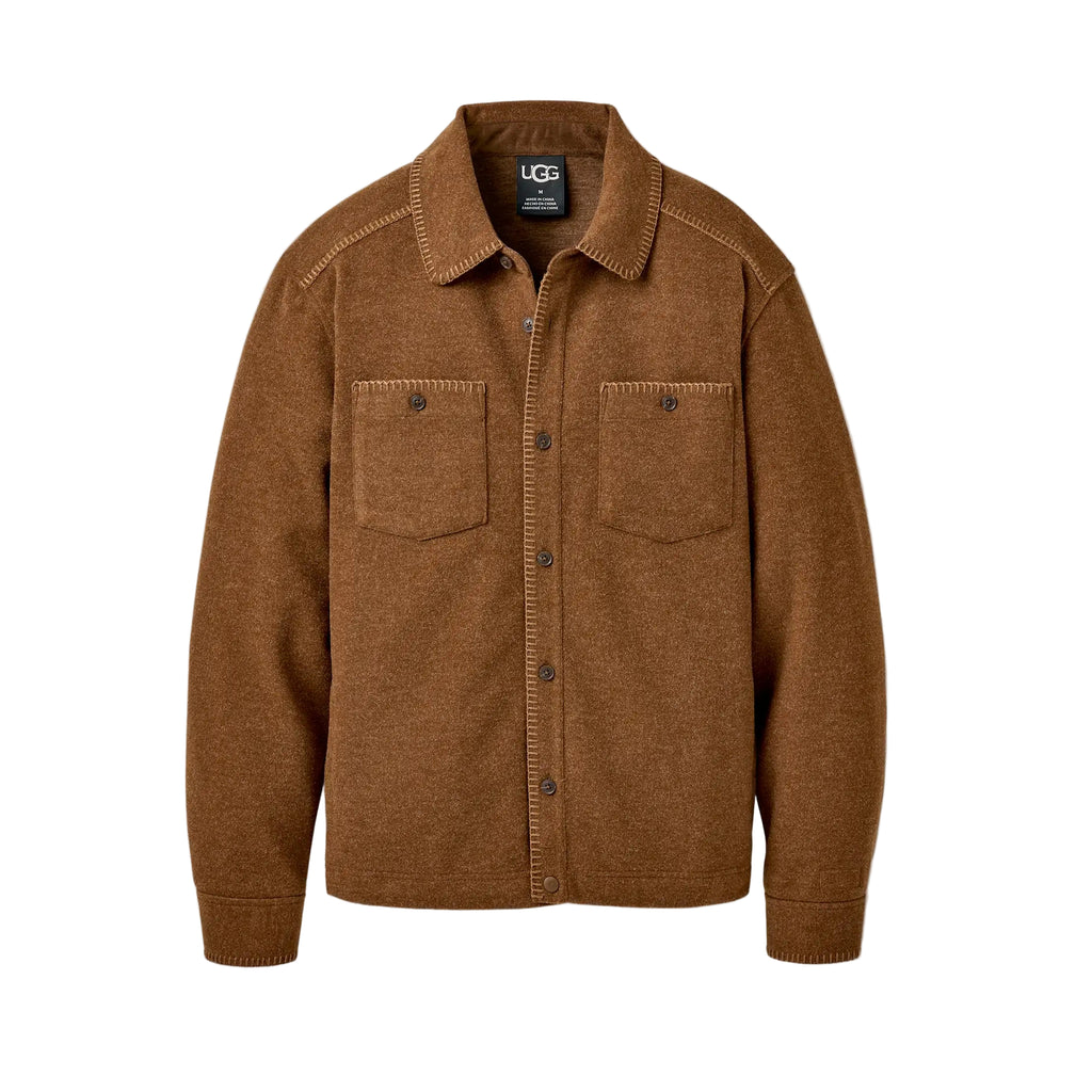 Discover the versatility of felted jersey with the Caelum Shirt Jacket. Soft yet structured, easy yet elevated, this button-up jacket features contrasting whipstitch details and a fit inspired by classic menswear.