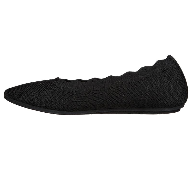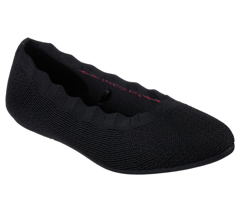 Our Planet Matters. Versatile style is even easier to adore in Skechers Cleo 2.0 - Love Spell. This Stretch Fit skimmer design features a woven knit fabric upper with scalloped edge trim and cushioned Air-Cooled Memory Foam insole. Our Planet Matters: Good for your feet. Good for the world.