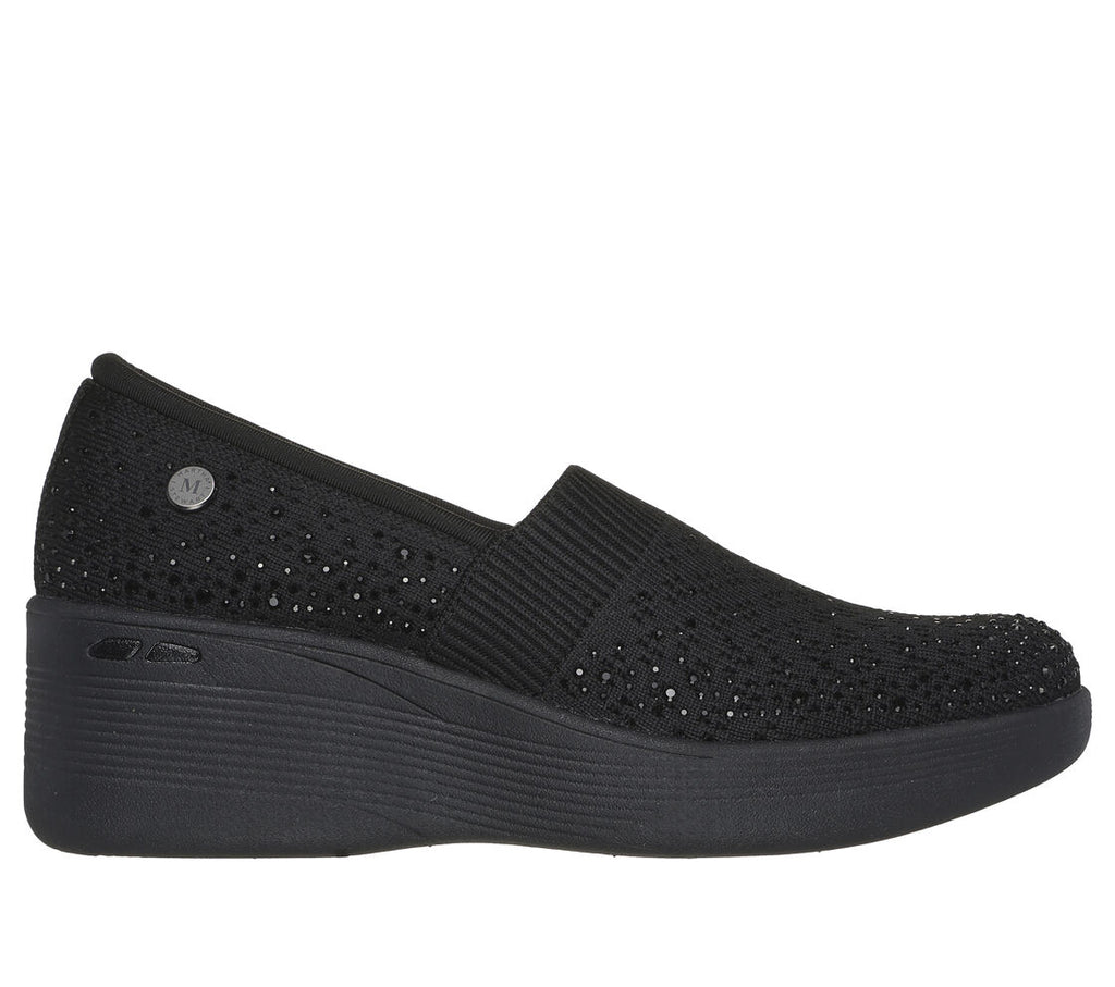 Celebrated lifestyle expert, Martha Stewart, delivers her one-of-a-kind touch to Skechers in this spirited collaboration. Shine on in fashionable flair wearing Martha Stewart x Skechers: Pier-Lite - Reflection. This casual fashion wedge features a Stretch Fit mesh knit upper with sparkle embellishments, a wedge midsole and a Skechers Air-Cooled Memory Foam insole.