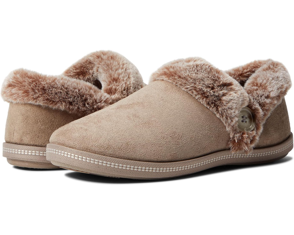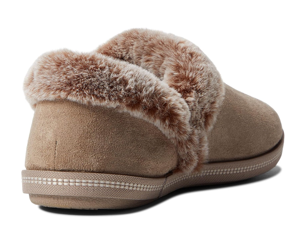 The SKECHERS Cozy Campfire - Fresh Toast slipper will keep you warm all season long, with its microfiber fabric upper and plush faux-fur collar.