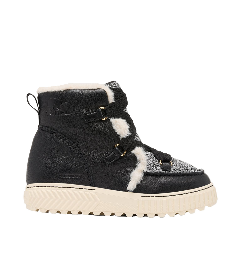 UPPER: Waterproof materials. Faux fur trim with D-ring hardware in eyestay. Heel pull tab. Fleece lining.