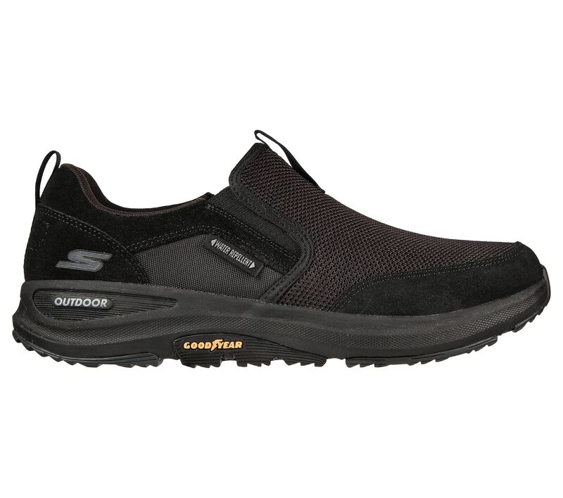 Explore the trails of nature in long-lasting cushioned comfort with the Skechers GO WALK Outdoor - Andes shoe. This pull-on walking sneaker features a breathable athletic mesh and leather trim upper with an Air-Cooled Memory Foam cushioned insole and a lightweight ULTRA GO cushioned midsole