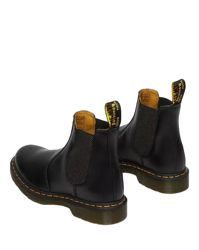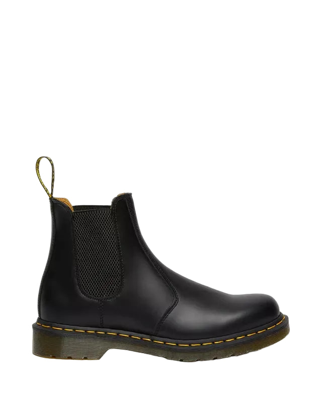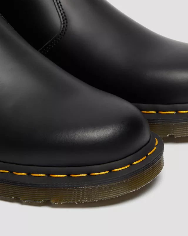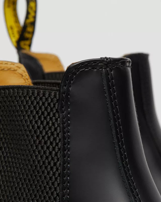 The 2976 boot is the Dr. Martens spin on the traditional Chelsea boot silhouette. The pull-on style and elasticated gussets make it as convenient as it is versatile — a quick and easy way to slip on some classic DM’s attitude. The grooved, bouncing sole is marked with our signature yellow welt stitching and the boot is tagged with our black and yellow heel loop. The durable Smooth leather can be polished or scuffed — however you wear it, do it your way.