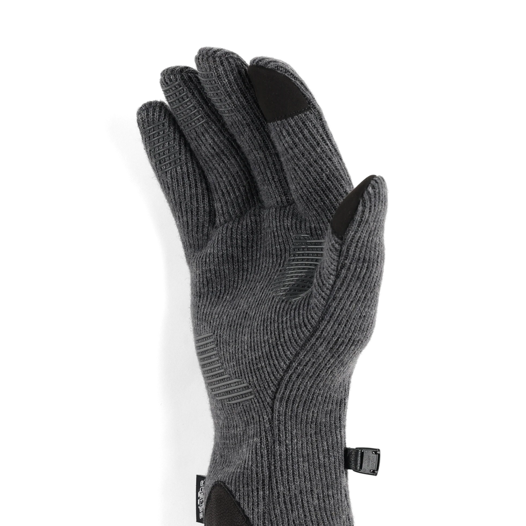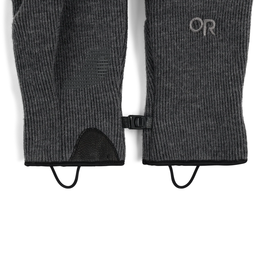 The AlpinWool Plus fabric is a warm, plaited knit fabric with excellent moisture transfer that will keep hands warm and dry. These gloves allow for touchscreen use without exposing skin to the elements, and the anti-slip silicone palm print provides grip and dexterity while the glove clip keeps the gloves together when not in use.