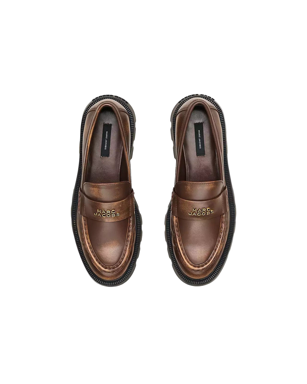 Crafted in distressed leather with a chunky platform lug sole, the Frankie Loafer delivers both presence and polish. Stacked logo hardware adds a refined signature finish.