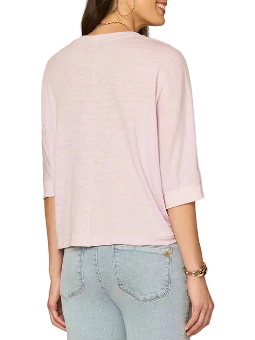 This knit top is sure to become a repeat go-to. It’s designed with three quarter dolman batwing sleeves, a classic scoop neck, and floral embroidery.