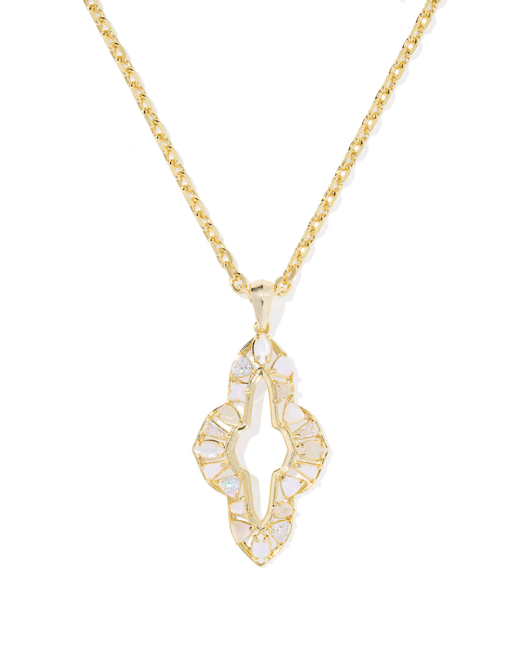Make a statement with the Abbie Gold Crystal Long Pendant Necklace. This bold style features an open-frame pendant in our iconic shape with a crystal and gemstone border on a long chain. It’s an easy way to add some sparkle to any look.