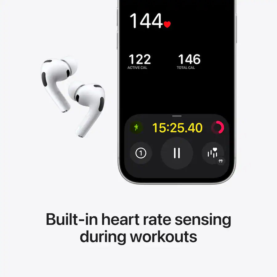 AirPods Pro 3. Up to 2x more Active Noise Cancellation than AirPods Pro 2. Now with heart rate sensing, Live Translation, longer battery life, and advancements in hearing health. Redesigned for a more secure fit.
