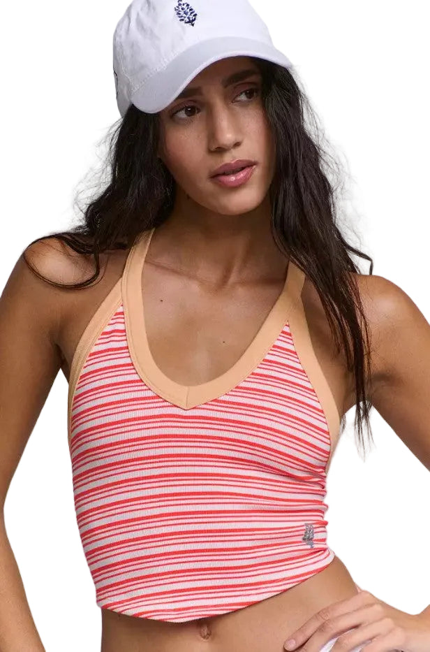 So essential, this cami is an easy layer featuring a soft and light fabrication with stripe detailing that offers barely-there coverage, with a flattering v-neckline and racerback for effortless cool.