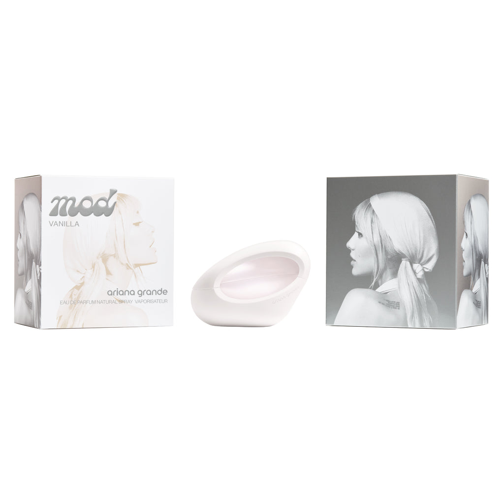 Ariana Grande MOD, the fragrance collection. MOD Vanilla Eau de Parfum is an instantly addicting fragrance opening with dark plum and musk. A touch of gourmand is heightened to a sophisticated level with Orrisand Praline. Vanilla absolute and cocoa unveil its unforgettable signature.