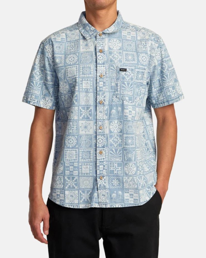 Revel in classic style with RVCA's Frame Chambray Shirt, crafted from lightweight cotton poplin fabric with a regular fit, traditional collar neck, short sleeves, a button-up closure and a single chest pocket. Finished with a scalloped hem and RVCA solo label on the chest pocket hem.