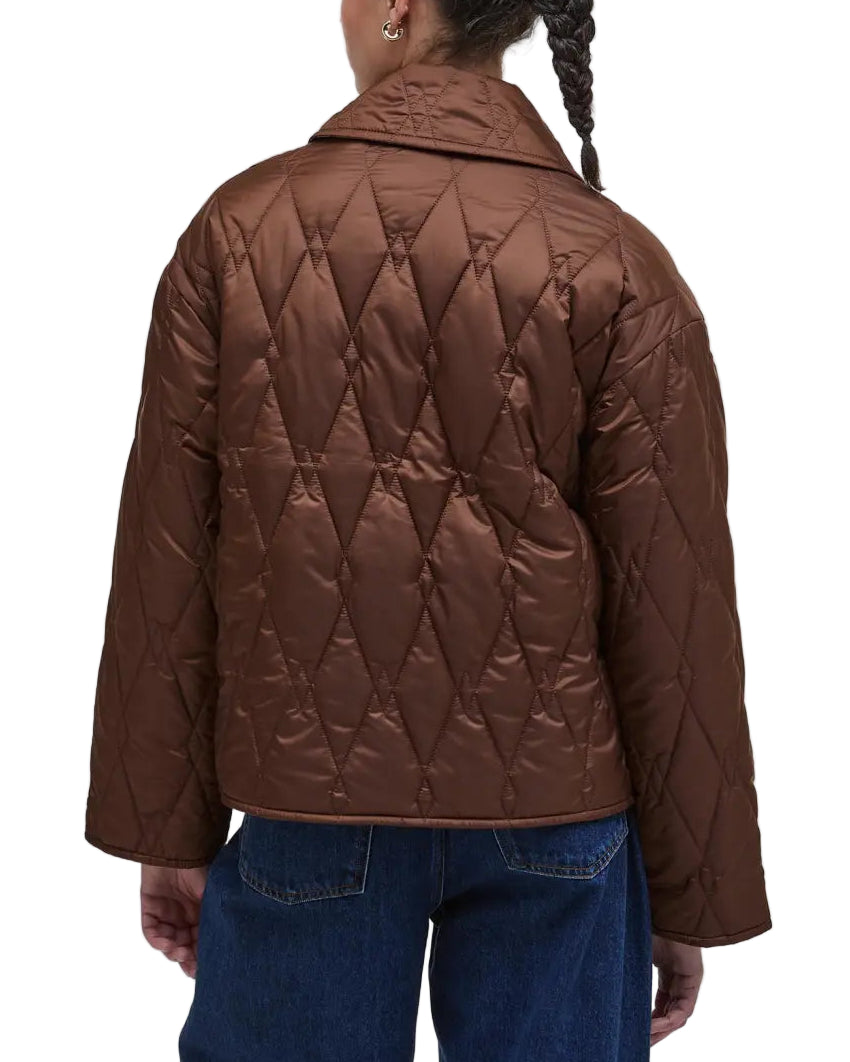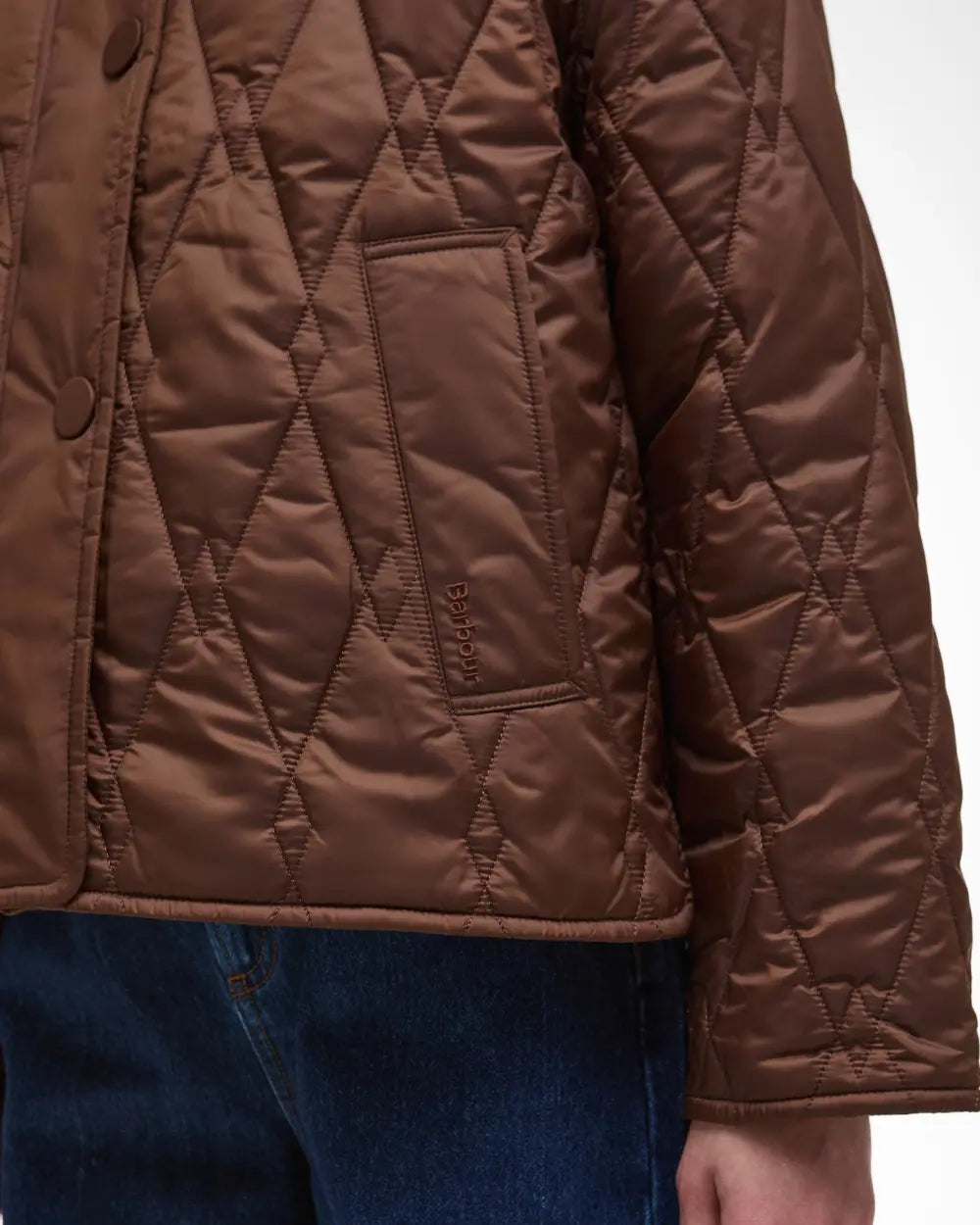 Giving the classic quilted jackets a contemporary new look, the Barbour Bernadette Quilted Jacket features a unique quilting design paired with large fabric-covered stud fastenings. A large two-piece collar and tartan back buggy lining give it modern yet distinctly Barbour feel while making it an ideal jacket for every day or special outings.