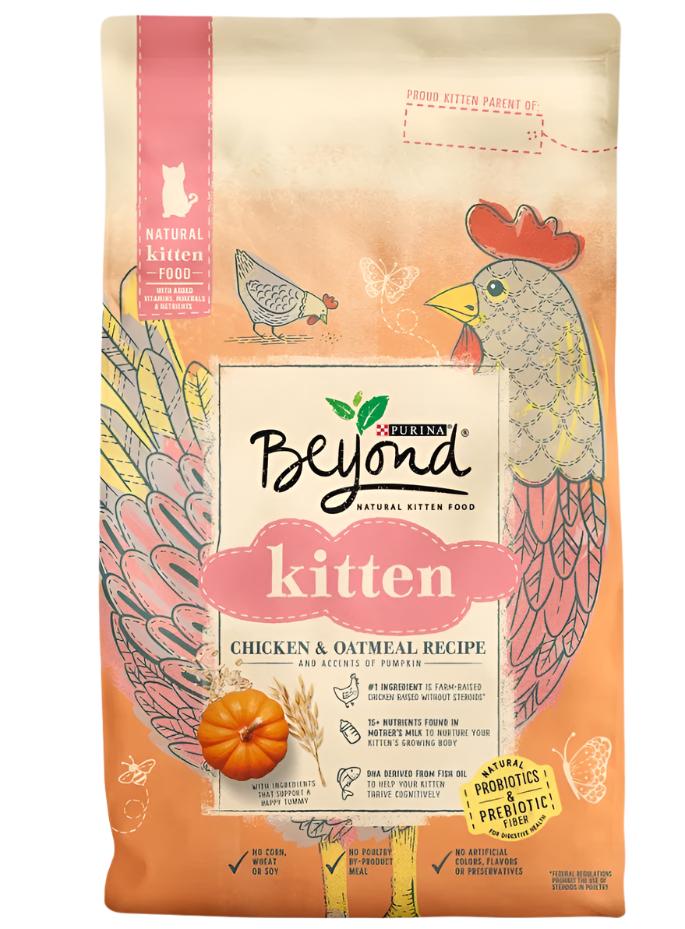 Beyond Kitten has natural probiotics & prebiotic fiber to support delicate digestive systems, plus soothing pumpkin & oatmeal. It also features over 15 nutrients found in mother’s milk & protein-rich ingredients like chicken raised without steroids.