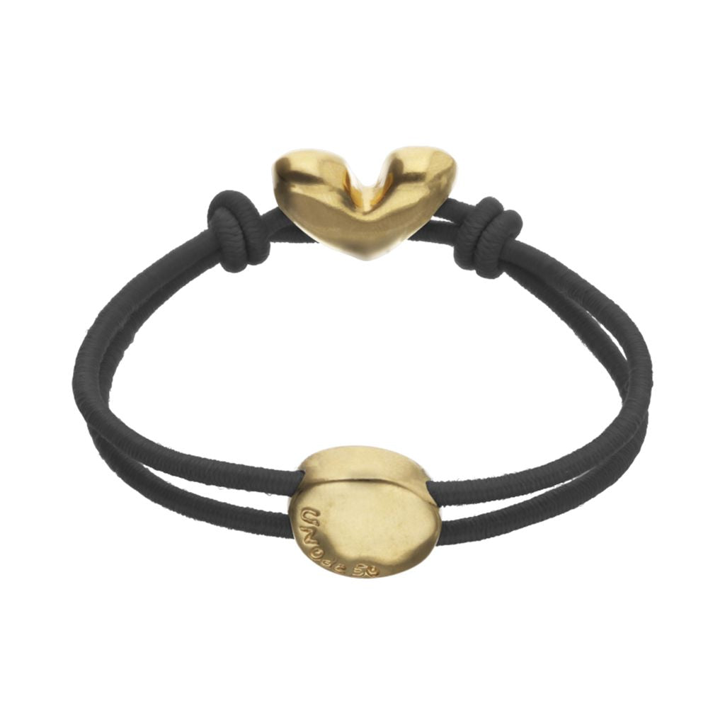 UNOde50 Black Elastic Thread Gold Heart Charm Bracelet - Medium