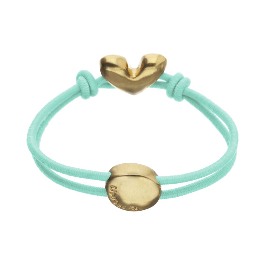 UNOde50 Teal Elastic Thread Gold Heart Charm Bracelet - Medium