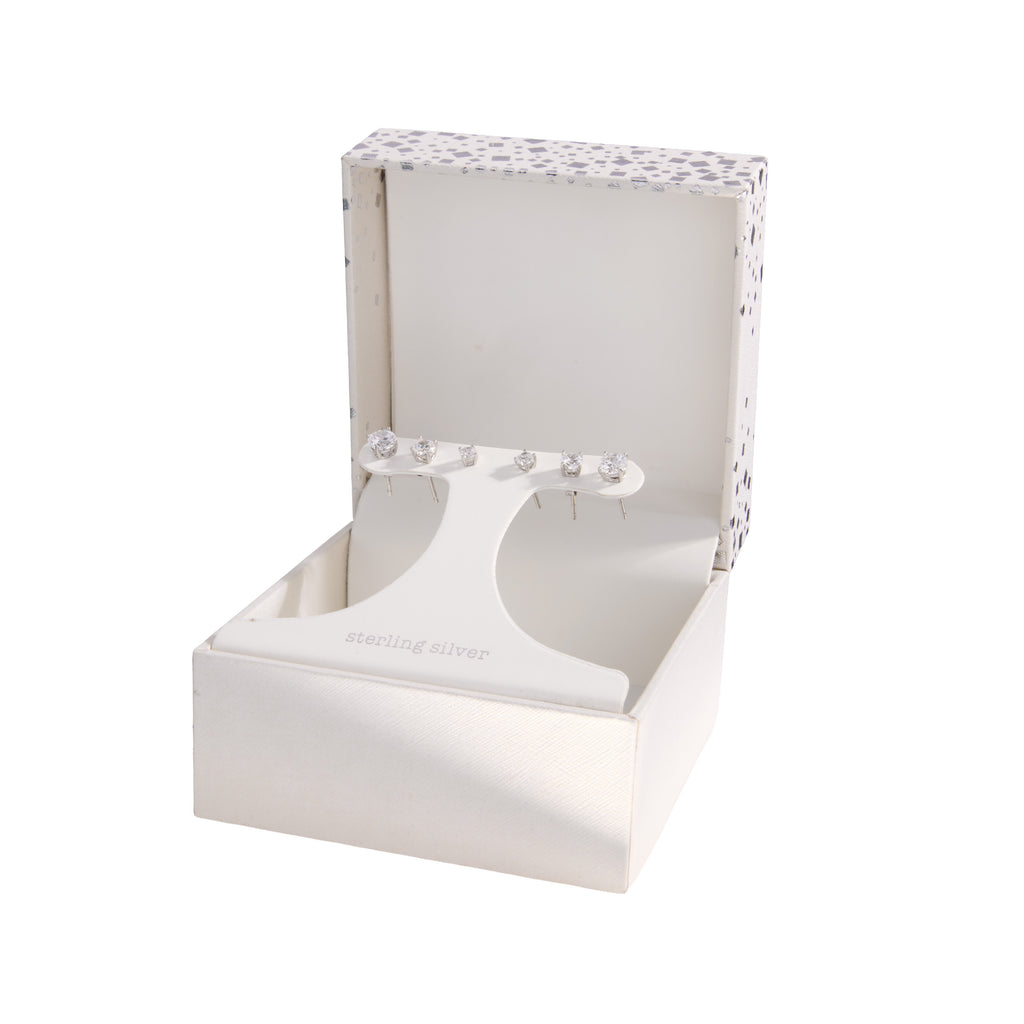 Athra Silver Crystal Stud Earrings - Set Of 3