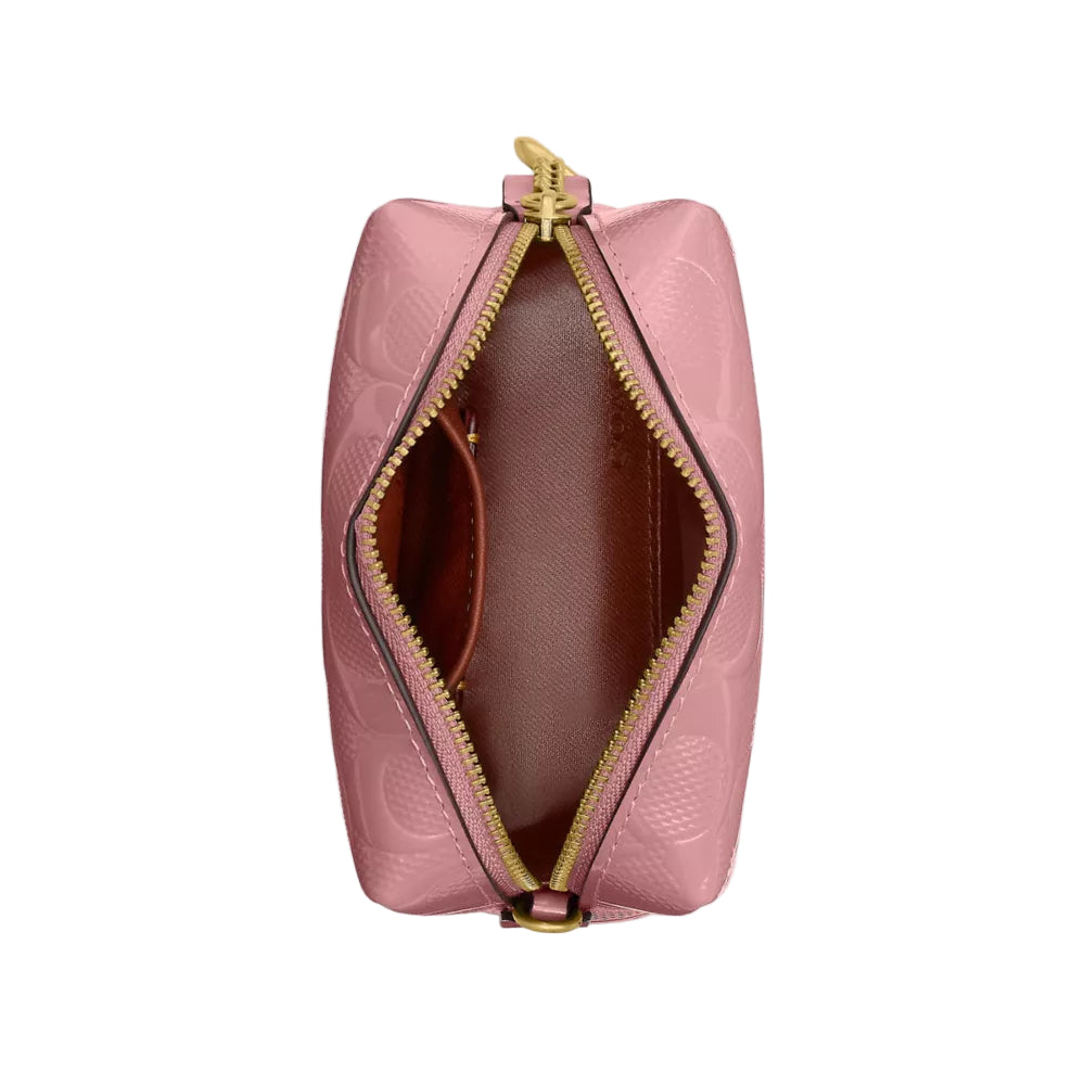 Featuring an elongated zipper for easy access to the interior, this compact Mini Cosmetic Pouch is perfectly sized to stash in your bag and easy to carry with the detachable wrist strap. Crafted of polished pebble leather detailed with our Signature hardware, use it to organize day-to-day needs like cosmetics, pill boxes, mints and more.