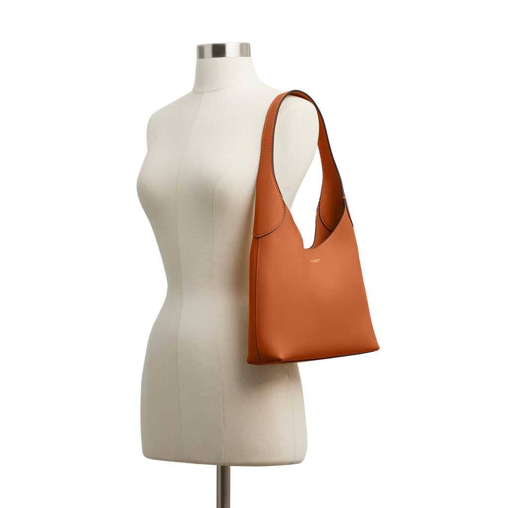 Coach's Brooklyn is an elegant, minimalist silhouette—with a distinctly New York attitude. Smaller than the 39, the hobo style is crafted of natural grain leather with beautiful texture and soft feel. Featuring a spacious interior with a snap pocket for access to essentials, the streamlined 28 has a comfortable, wide shoulder strap and an easy magnetic snap closure.
