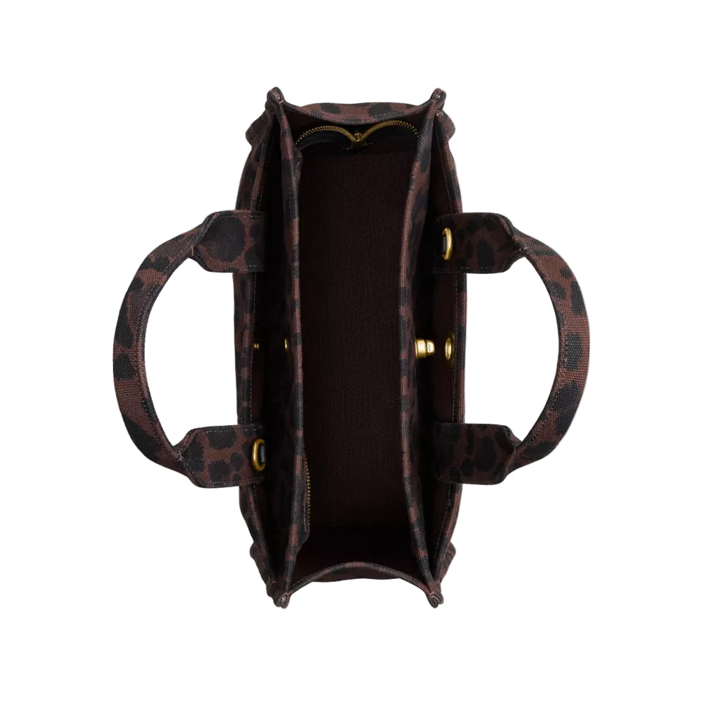 Carry as much (or as little) as you like with our lightweight Cargo tote printed with a bold leopard pattern inspired by archival 1960s designs of Bonnie Cashin, our first creative director. Detailed with our cursive Coach script embroidery and iconic turnlock closure, this spacious carryall has an open interior with room for a 13" laptop, two outside pockets for easy organization and a removable webbing strap for shoulder or crossbody wear. Crafted to last, this versatile style is made with cotton sourced from farms that use regenerative agricultural practices and inspired by our commitment to reducing our impact on the planet. Now no matter where you go with it, you’ll always be toting around a little extra love for the planet.