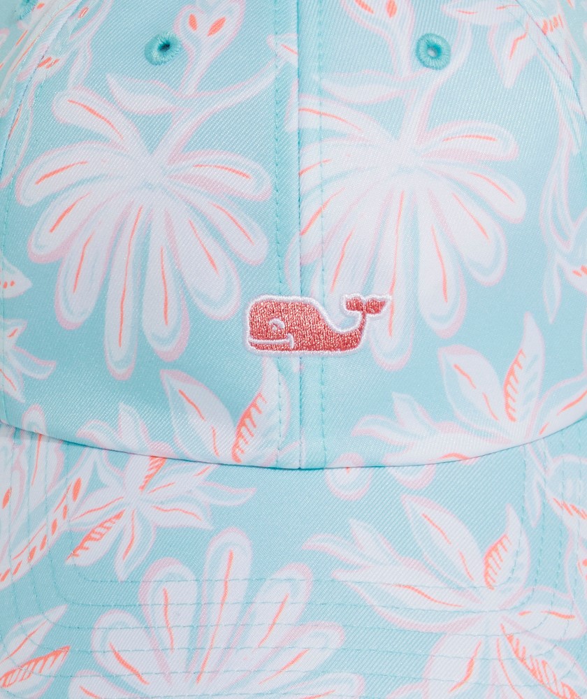 Product Details:All-over Cay Floral print Classic baseball hat designEmbroidered whale at the frontLeather, adjustable back strapImported