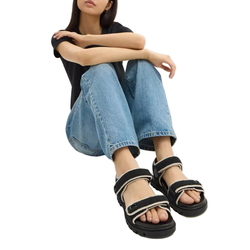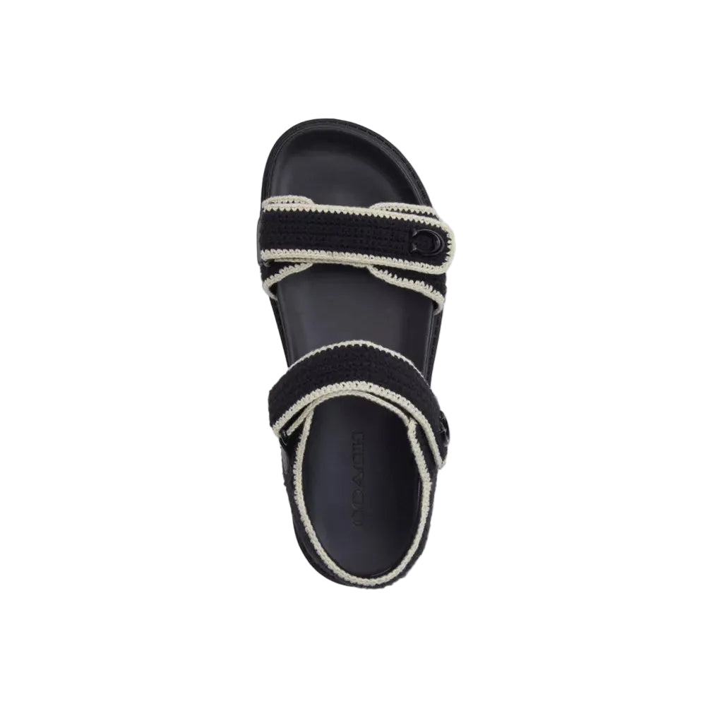 A laidback sporty design, our double strap Brynn sandal is crafted of two-tone crochet cotton yarn. Featuring a comfortable padded footbed, durable rubber outsole and adjustable Velcro closures for on-and-off ease, it’s finished with our tonal Signature hardware for a heritage touch.