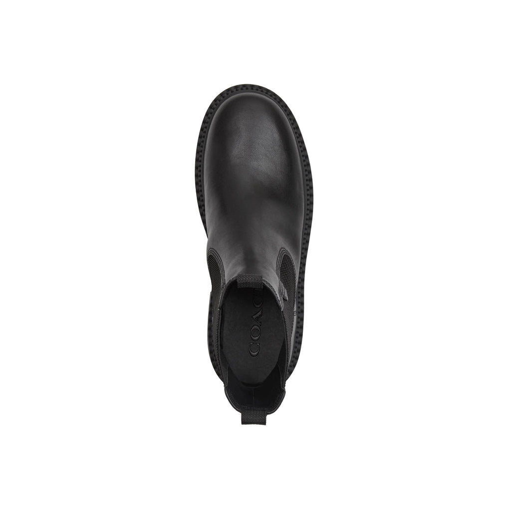 Sitting on a rugged lug platform sole, COACH's Chelsea boot is a streamlined style for every day. Crafted of smooth leather with a stretch gusset for a personalized fit, the slip-on silhouette is finished with a lightweight EVA outsole and pull-tabs on the front and back for on-and-off ease.