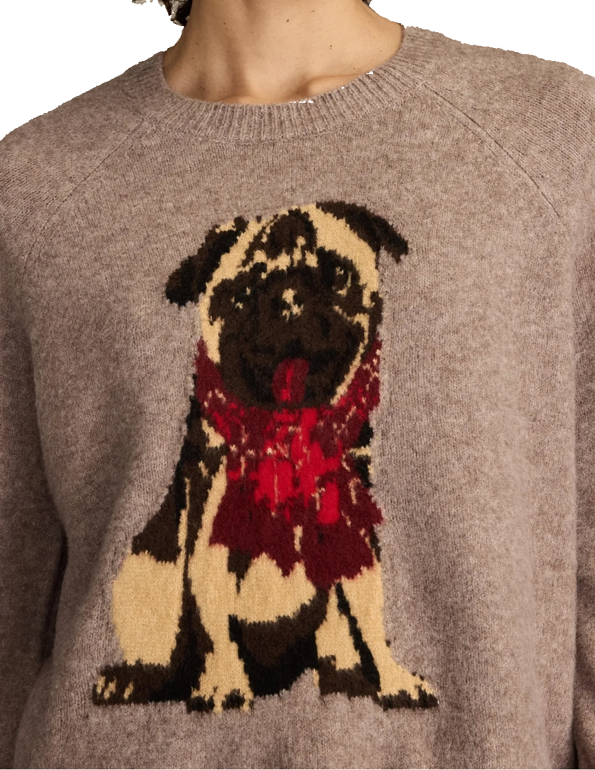 Spun from our super cozy Cloud Soft fabric, this crewneck sweater’s intarsia pug design and elevated ribbed trim make it essential for making a major style statement all season long.