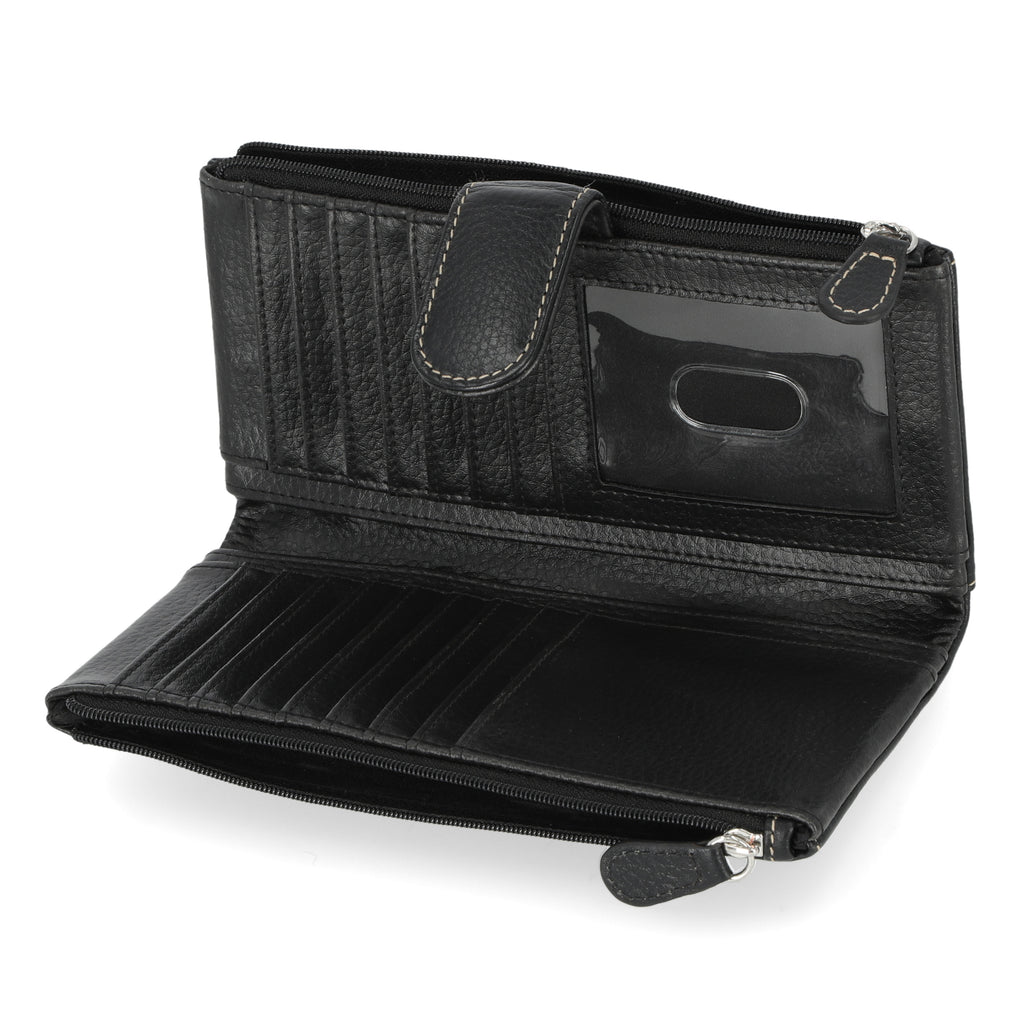 Product Details:Dimensions: 5" x 3.5" x .5"Metal Snap ClosureRight side has 5 vertical card slots1 ID window under card slots with thumb hole ejector1 gusset slip pocket behind card slots