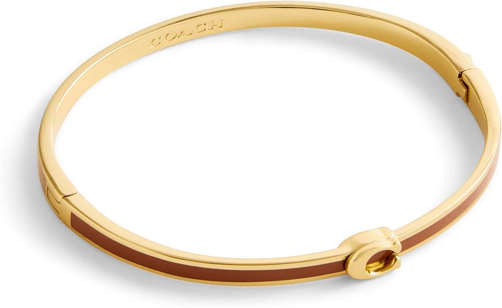 Product Details:Bracelet has an easy hinge closure. Made from brass and enamel. Includes signature Coach jewelry dustbag.
