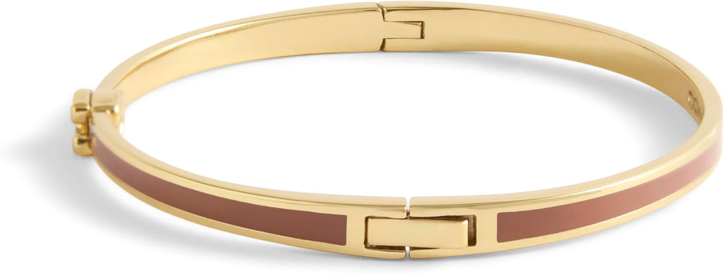 Minimal hinged bangle bracelet in neutral brown enamel featuring signature sculpted C hardware at front perfect for everyday.