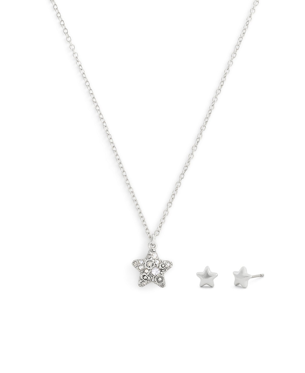 Sophisticated jewelry set featuring coordinating necklace and earrings. Refined chain necklace featuring celestial star pendant adorned with sparkly pavé, signature sculpted C hardware and iconic tea roses. Perfectly paired with everyday star stud earrings with hypoallergenic titanium posts to complete the look. Comes packaged in a signature COACH gift box.