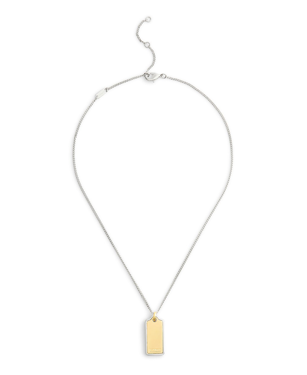 Refined chain necklace featuring iconic hangtag pendant. Adorned with signature logo in neutral two-tone finish perfect for everyday.
