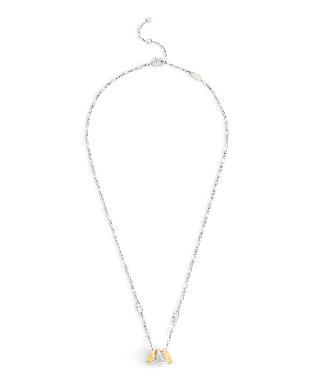 Refined chain necklace featuring rondelle pendants with mixed signet silhouettes. Adorned with signature mixed motifs and neutral two-tone finish perfect for everyday.