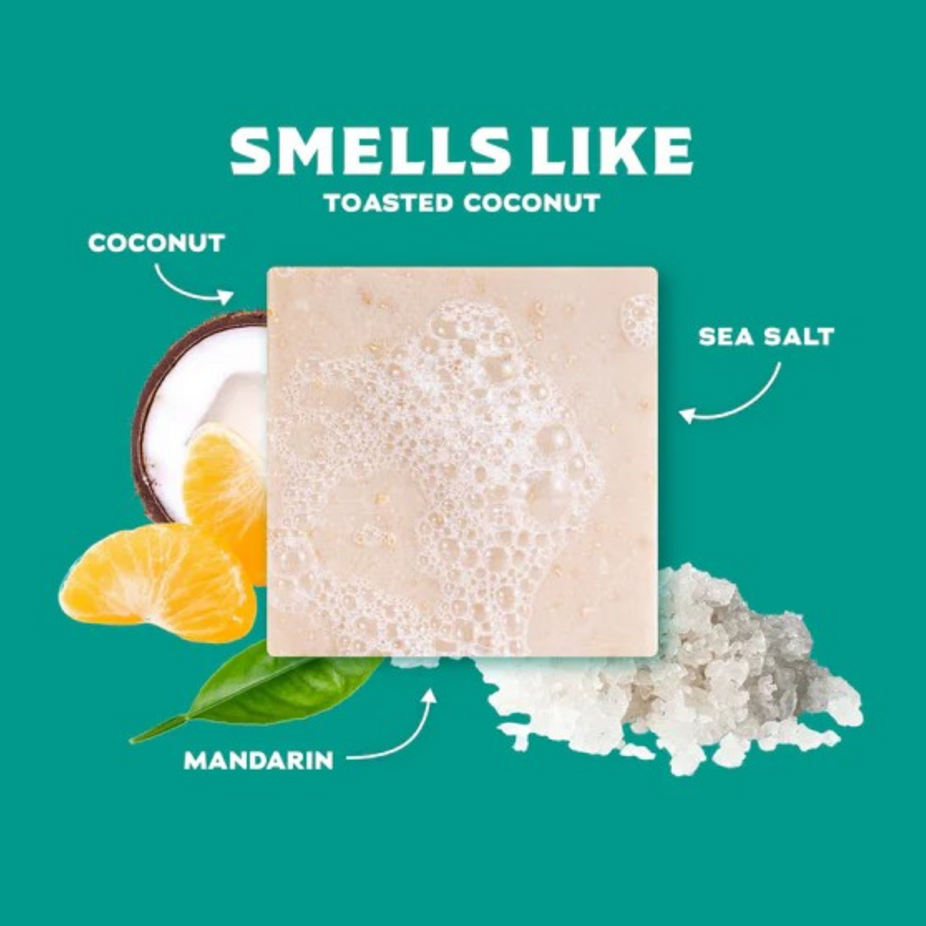 Saponified Oils of (Sustainable Palm, Coconut, Olive), Naturally Derived Fragrance, Shea Butter, Coconut Shreds, Coconut Milk, Coconut Water, Titanium Dioxide, Kaolin Clay, Sea Salt