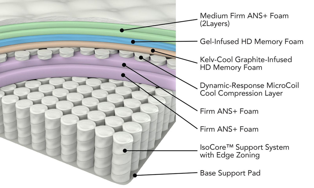 Kelv-Cool Graphite-Infused High Density Memory Foam for effective heat dissipation and enhanced airflow