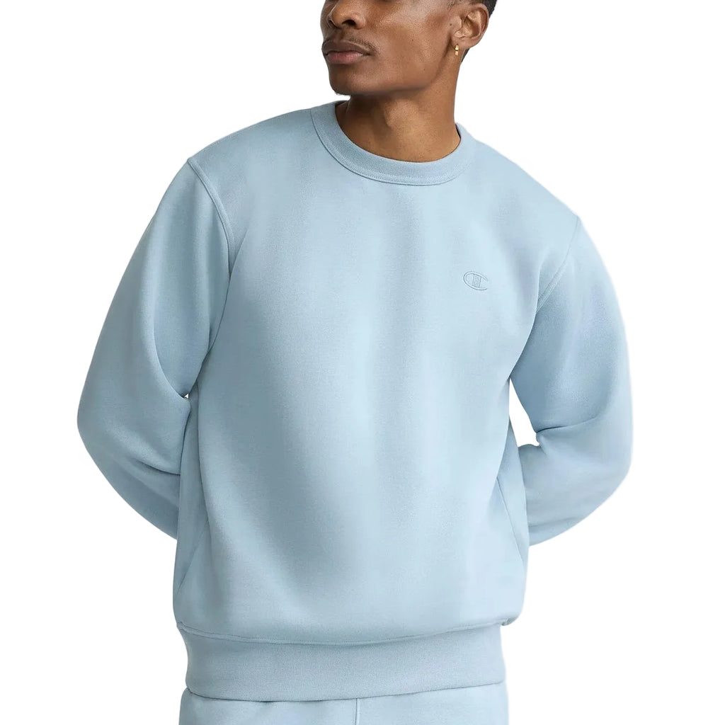 If you're looking for the ideal pullover, look no further than this Powerblend Crewneck Sweatshirt for men. Crafted with signature Powerblend Fleece, this sporty design has a soft, brushed interior for warmth without weighing you down. High-quality, cotton-blend fabrication delivers a piece that can be a longtime favorite. Extra stitching creates a sturdy finish, while ribbed cuffs and a lay-flat hem add to its signature appeal. The classic style is finished with a C patch at the left chest for an authentic touch. From joggers to shorts, this sweatshirt is the perfect match to your favorite Champion styles.