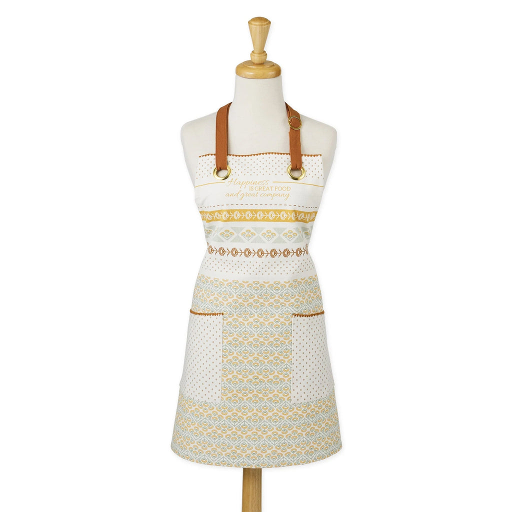 Golden Gardens Pantry Apron is crafted from 100-percent cotton and machine washable for easy care. Designed with convenient utility pockets, an adjustable neck loop and generous waist ties for a comfortable fit. Part of our Golden Hour Collection, canvas apron is embellished with gold hardware, contrasting pockets, neck loop and waist ties and finished with decorative stitching.