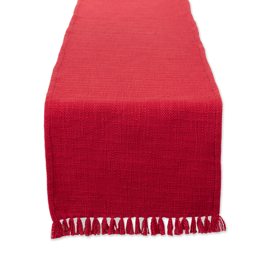 Protect your tabletop while elevating your dining experience with the Holly Berry Slub Table Runner, measuring 14" W x 72" L. The intricate design is built to last, ensuring long-term beauty and resilience. Whether it's Christmas, Valentine's Day, or the 4th of July, this runner adds a splash of red to your decor with its elegant tassel fringe.