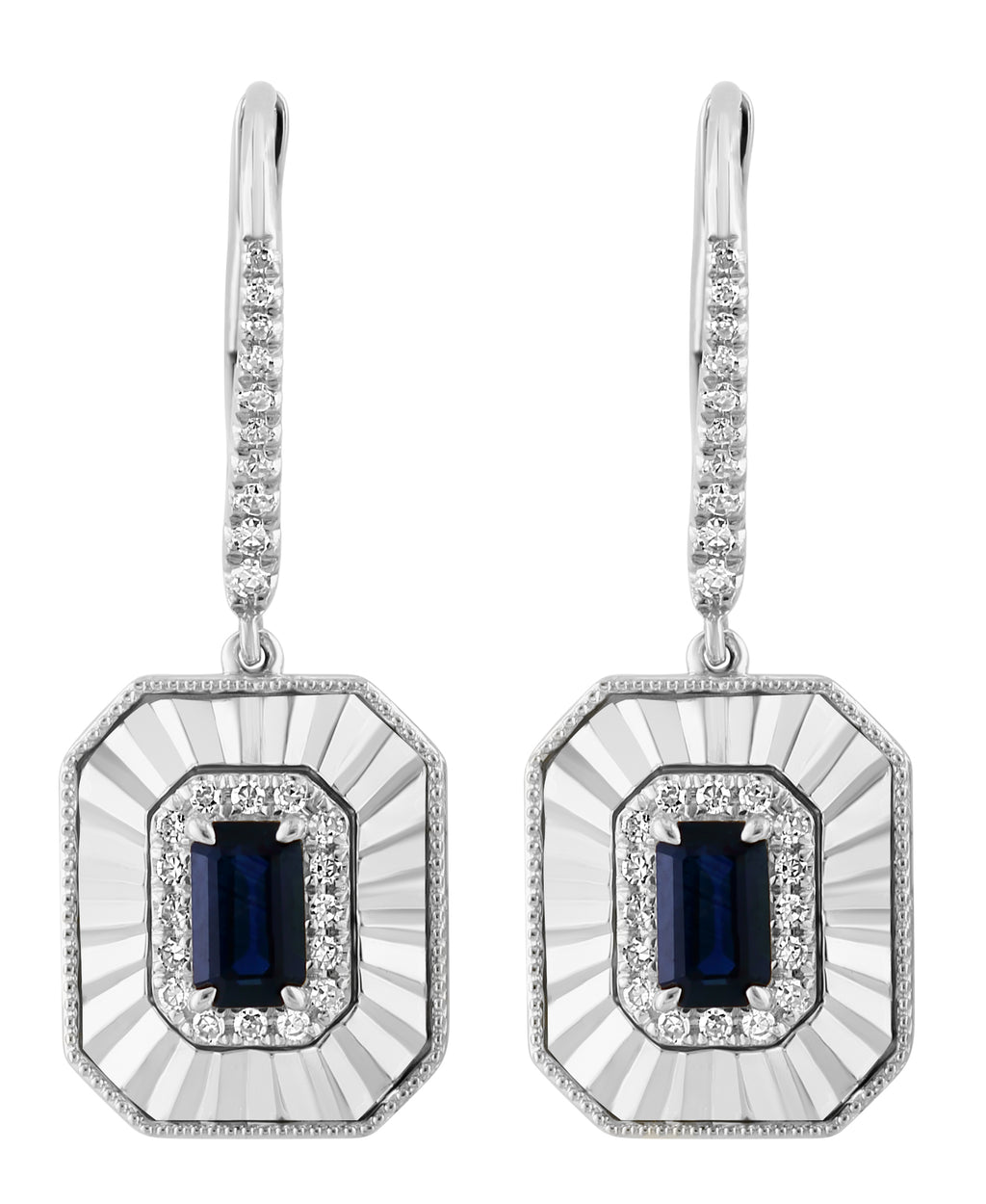 Product Details:Metal: 14K GoldMetal Color: WhiteStone: Emerald Cut Blue SapphireStone 2: Round Diamonds