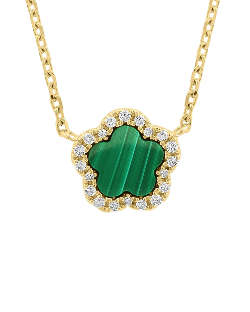 Product Details:Metal: 14K GoldMetal Color: YellowStone: DiamondStone 2: MalachiteLength: 18"
