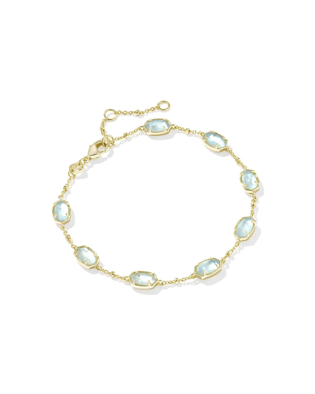 The Emilie Gold Chain Bracelet with Light Blue Illusion is designed with dainty iterations of their signature Kendra Scott shape, linked by a metallic satellite chain. Layer for a little extra something in your minimalist stack!