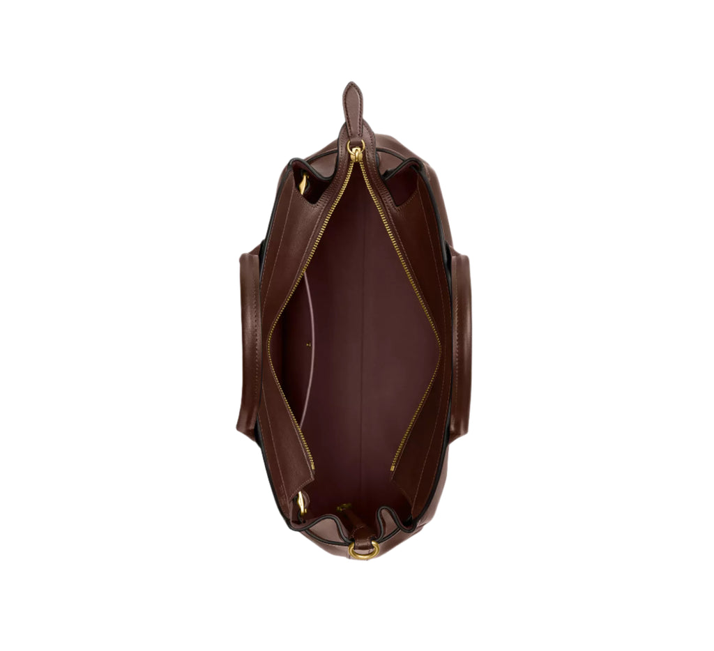 A vintage-inspired silhouette, our Empire Carryall is designed with a New York state of mind—and attitude. Crafted of natural grain leather with beautiful texture and soft feel, the generously sized 40 is great for everyday featuring a roomy open compartment with space for a 13" laptop and a snap pocket to hold essentials. Finished with a zip-top closure and interior buckles to expand the side gussets for increased capacity, carry by the top handles or wear hands-free with the detachable crossbody strap.