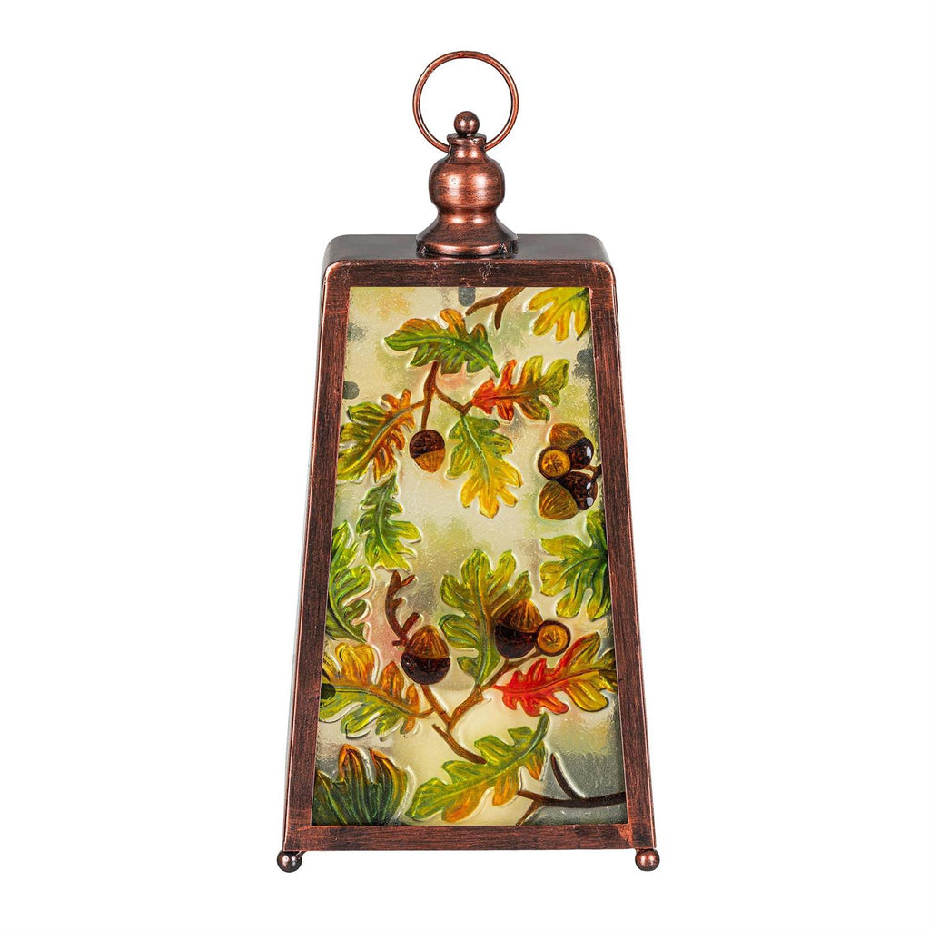 Illuminate any space with this striking lantern assortment. Crafted with precision and attention to detail, these lanterns blend functionality with aesthetics to create a warm and inviting ambiance. They feature a beautiful fall leaf design. The soft glow from these lanterns will brighten everything around it. This assortment is perfect for anyone looking to elevate their décor. They require three AAA batteries, not included with a six hours on/eighteen hours off timer function.