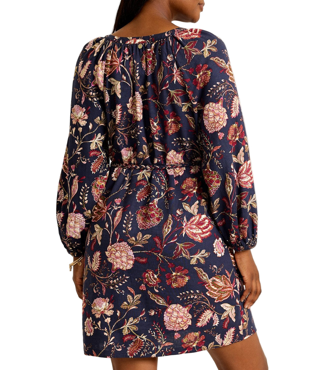An airy linen blend meets a moody floral print, creating a dainty dress that helps you transition into the cooler season, complete with long sleeves, pockets, and a customizable belt.