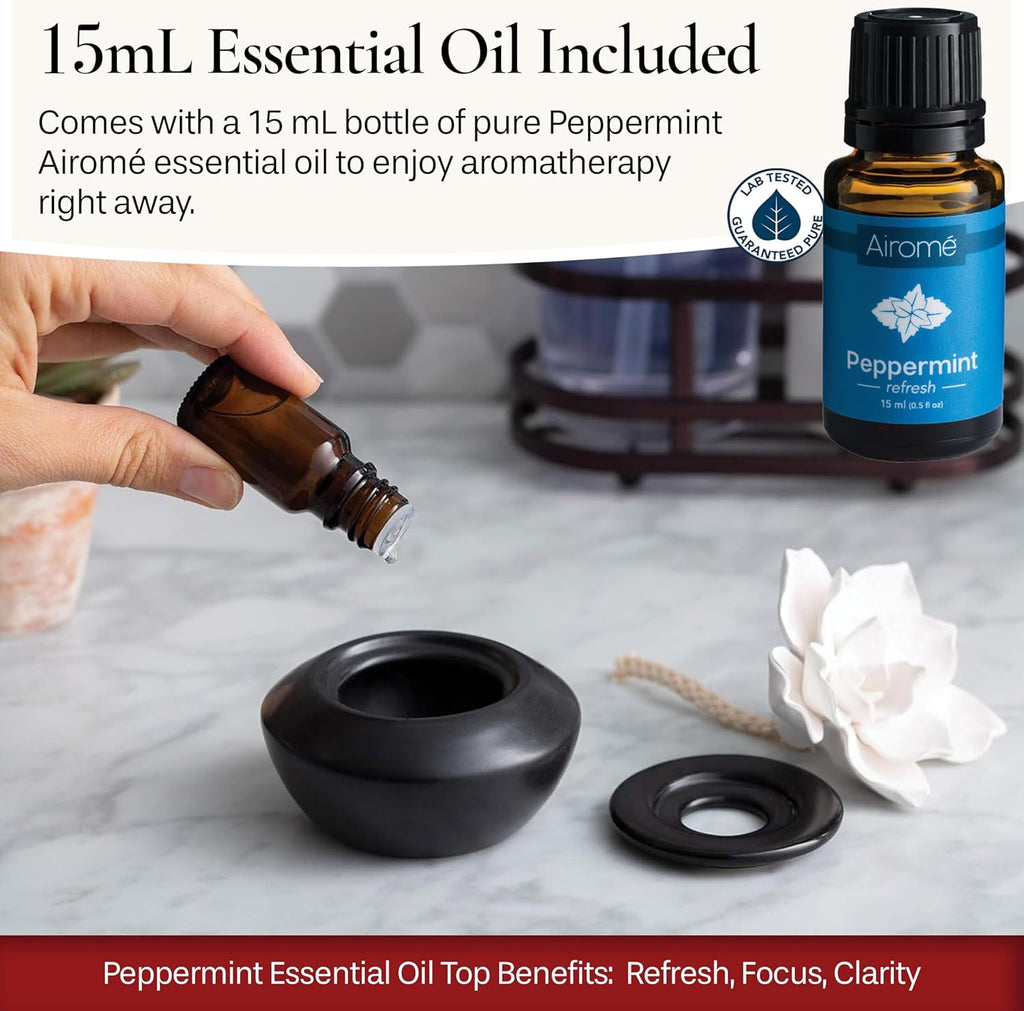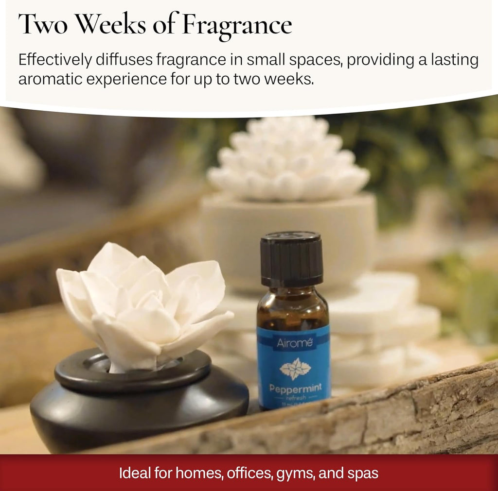 15mL ESSENTIAL OIL INCLUDED – The diffuser comes with a 15mL bottle of pure, therapeutic grade Peppermint Airomé essential oil to get you started right away. This convenient addition ensures you can enjoy the benefits of aromatherapy immediately and create a soothing atmosphere in any room.