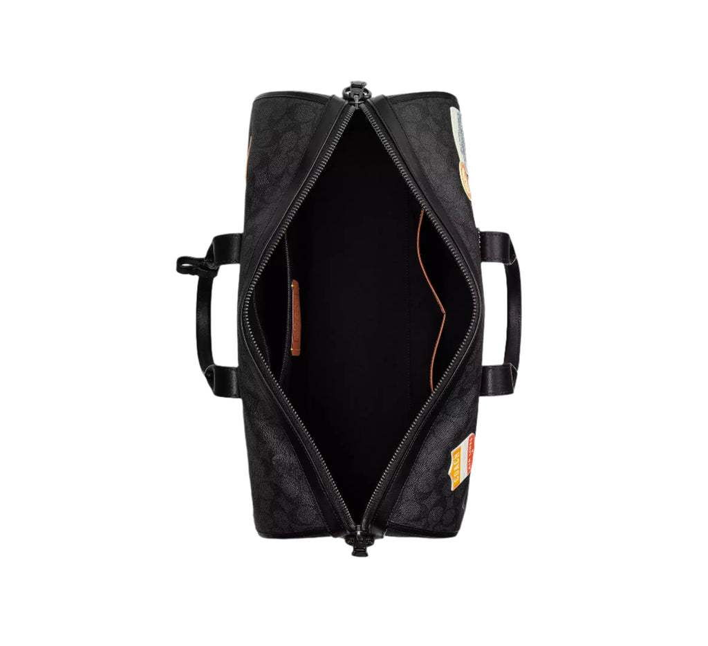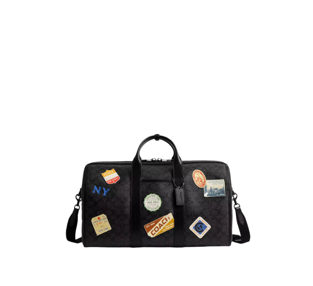 A bag as distinct as its namesake city, the Gotham is a sleek no-fuss carryall. With inside multifunction pockets for easy organization and a convenient outside pocket for access to essentials, this spacious Duffle 45 features an open interior with room for a 16” laptop, sneakers, clothes and more. Crafted of leather and our Signature canvas detailed with playful patches inspired by vintage luggage travel stickers, it’s secured by a zip closure and finished with a detachable strap for shoulder or crossbody wear.
