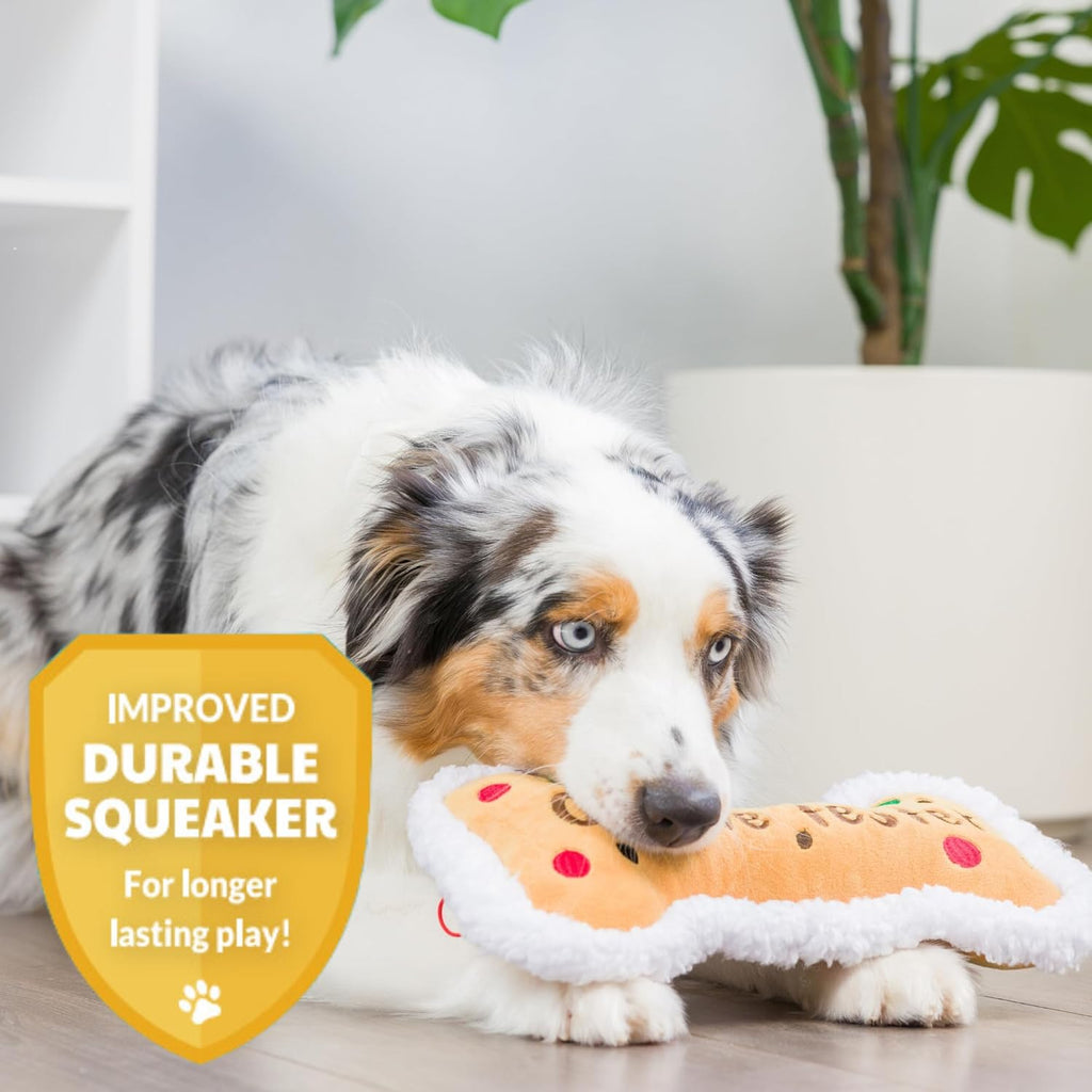 PLUSH HOLIDAY DOG TOY - Each baby soft plush Power Plush is backed internally with an extra layer of durable mesh to help make them hold up to the scrappiest canines! It has no loose pieces; each seam is reinforced using nylon seam tape for extra strength as your pup chews on it. Use as a stocking-stuffer for your pet or as a present for them to open for Christmas or Hanukkah. It will be an unforgettable Christmas or holiday gift!