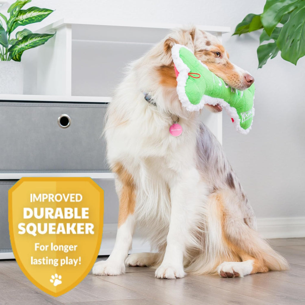 SQUEAKY DOG TOY - These Huxley & Kent Power Plush dog toys are sure to please this holiday season. These dog toys are not only soft and durable but are designed to keep your pup engaged with the interior squeaker. Our Large and Jumbo sizes have been pup-graded in 2023 with an improved durable noisemaker! Our new formulated squeaker has a thicker wall and harder density to better withstand the power of dogs' jaws and sharp K9s.