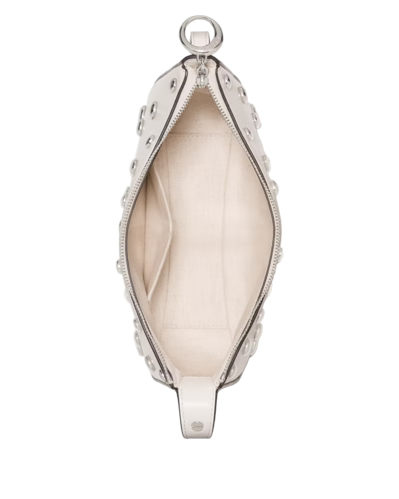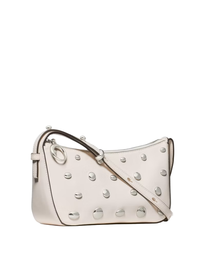 Our Halo collection is named for its unique ring-shaped hardware—an archival detail that dates back to Kate and Andy Spade's early days in business. This petite crossbody in glossy glazed leather and shiny studs is a perfect complement.